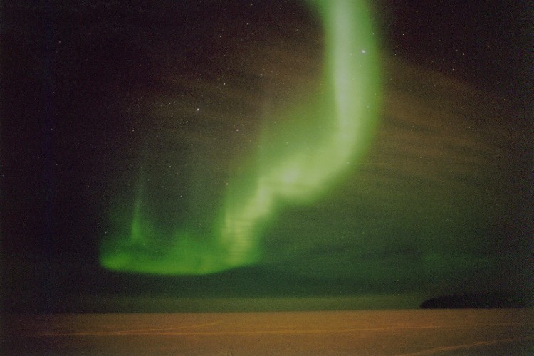 This was taken very early on October 4, 2003, beside Alexandra Falls on the Hay River in the Twin Falls Gorge Territorial Park, Northwest Territories. Photo details: Fuji Superia 800, 24 mm, f 1.8, exposed for 30 seconds. John